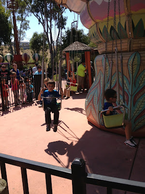 The boys rode the roller coaster at Looney Tunes Land - they are in the front car...